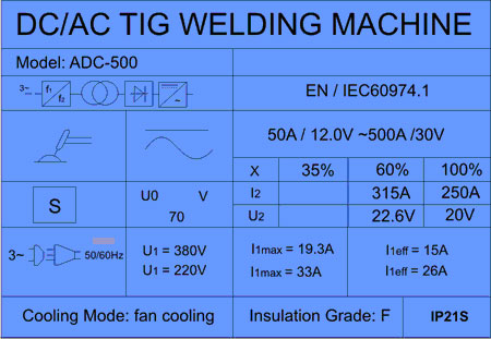 Equipamento Trifásico 220/380Vts com amperímetro e Voltímetro analógico, 2 e 04 toques, Pós vazão de gás, Rampa de subida e descida, Partida por alta-frequência (Não necessita encostar o eletrodo para partida do arco). Controle de frequência de pulso, Controle de largura de pulso, Controle de balanço de onda em AC (Aumenta a penetração e limpeza do cordão em AC). Controle de freqüência em Hz, Controle de corrente de base, Controle de corrente de pulso, Arc-force (Facilita abertura de arco com eletrodos revestidos umedecidos ou de má-qualidade). Sistema MMA – Manual Metal Arc, para soldagens com eletrodos revestidos até 3.25mm.