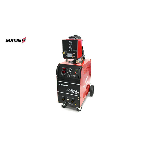 Máquina de solda MIG/MAG, Eagle 552T, possui controle de potência por tiristores, que confere maior conforto na regulagem e parametrizações de soldagem;